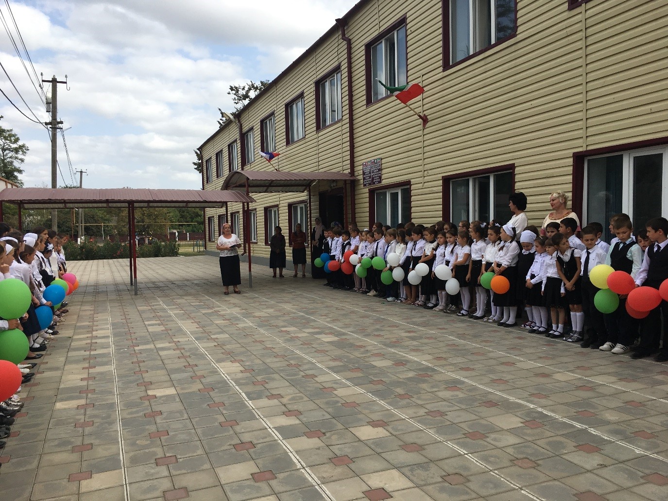 03.09. - Оформлено здание школы баннером и флажками.