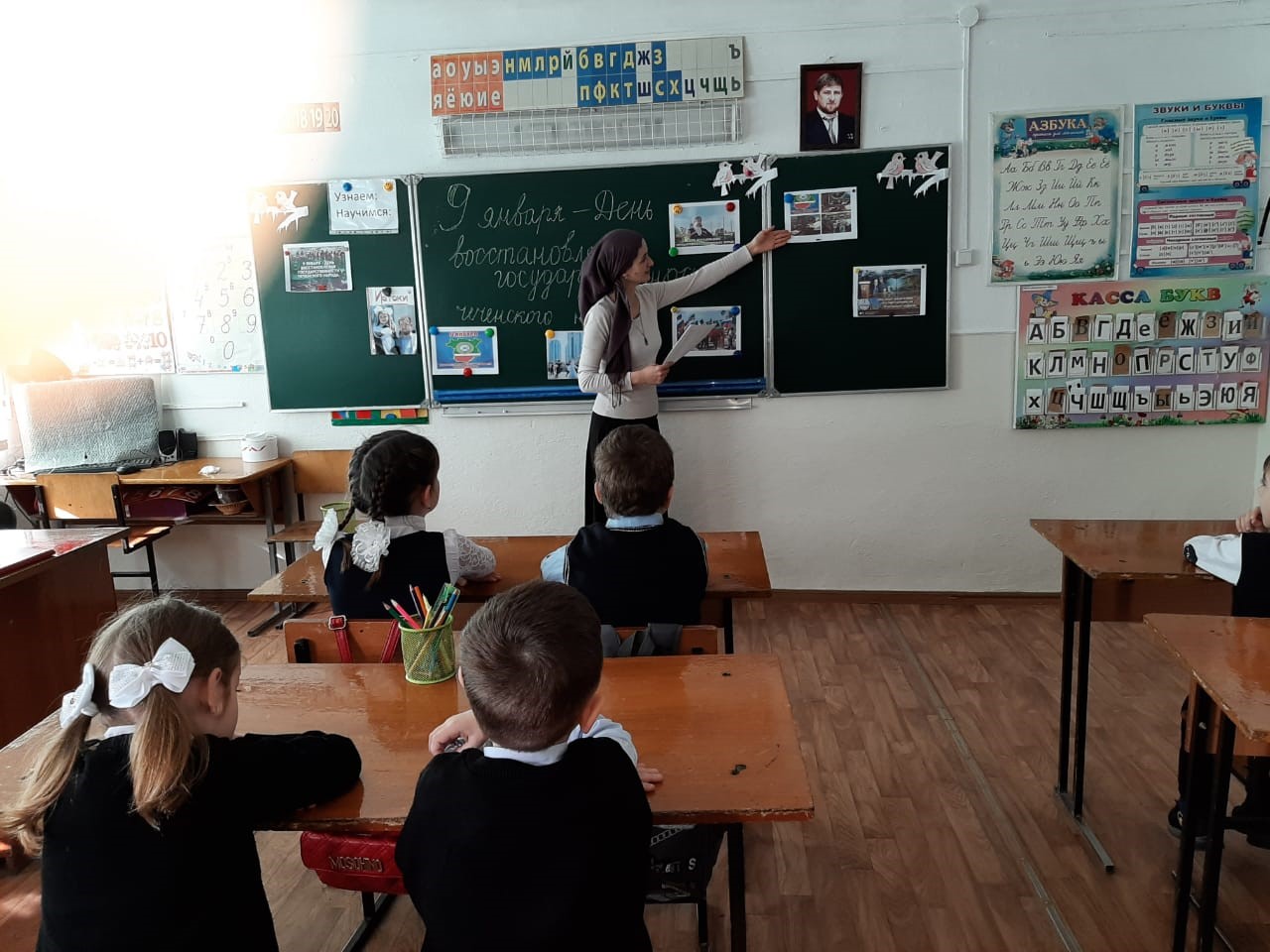 18.01.2020С целью ознакомления с историей чеченского народа , привития любви к Родине в 1-4 классах проведены классные часы по теме: «Восстановление государственности ЧИАССР»