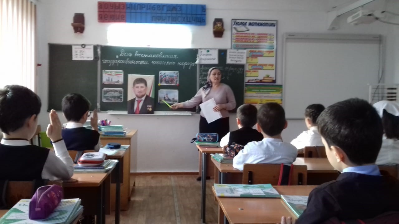В 3-4 х классах проведена общешкольная линейка, посвященная Дню восстановления государственности чеченского народа.