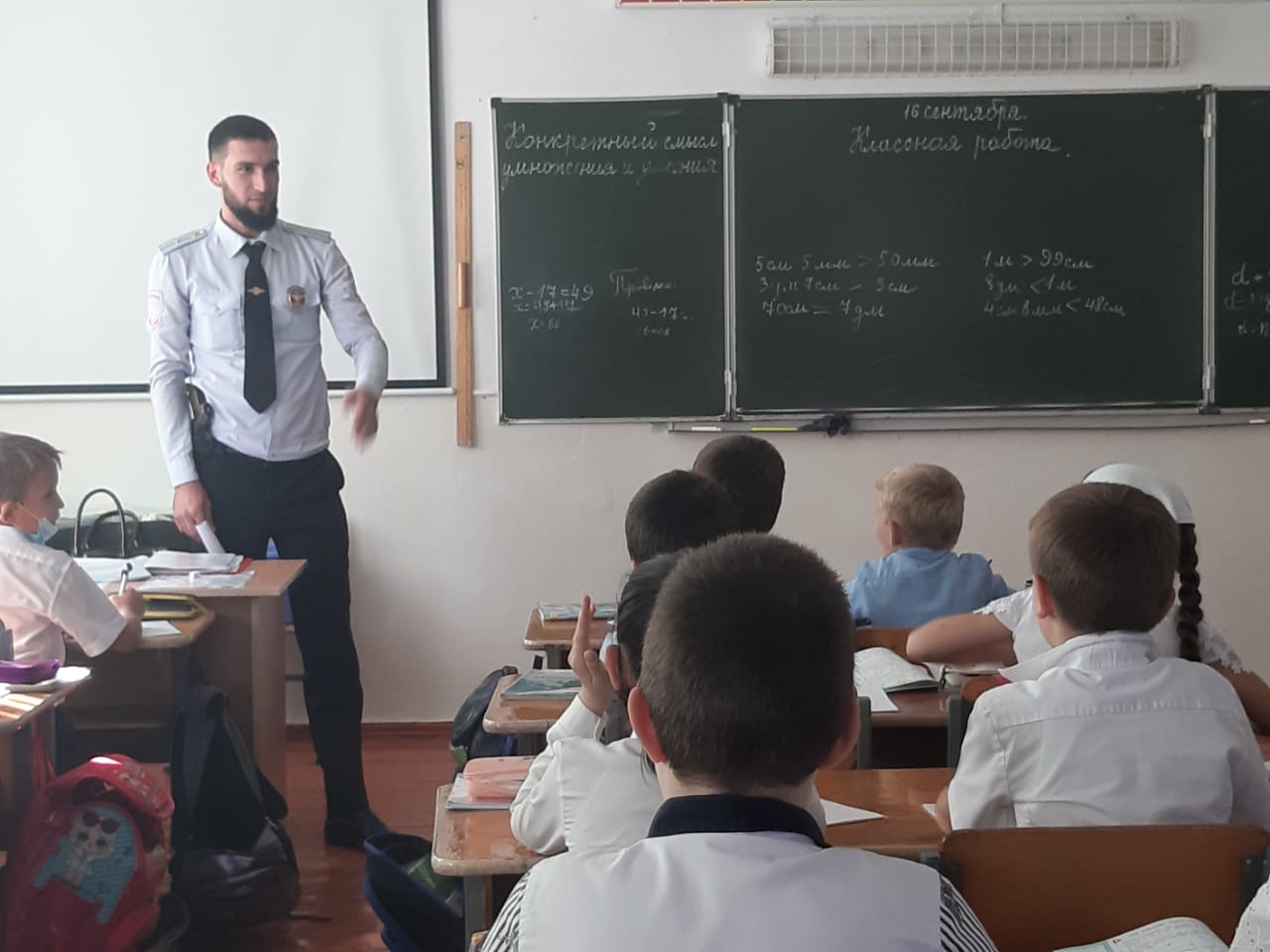 16 сентября в МБОУ "Алпатовская НОШ" в 3-х классах, проведена беседа с инспектором по пропаганде БДД ОГИБДД - Алиевым И.М.