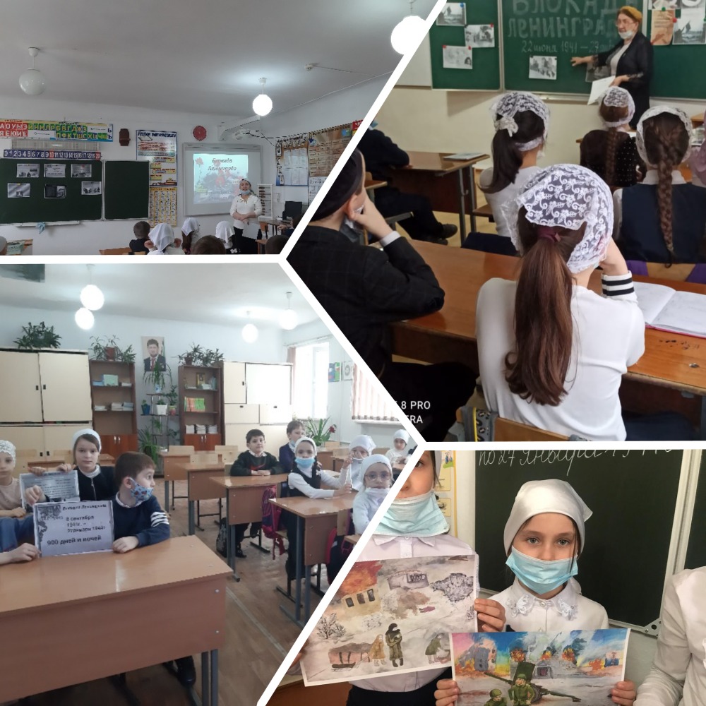 Классный руководитель 3 «в» класса Джамалдинова М.М.. рассказала о тех страшных днях в Ленинграде. Рассказ сопровождался показом презентации. Особенно детей затронул рассказ о маленькой девочке, о Тане Савичевой у которой сначала погибла вся семья, а потом и сама она тоже умерла от истощения.В 1 «а» классе Газиева Т.И.провела классный час с презентацией. На нём ученики узнали о том, что на нашу страну 22 июня 1941 года напала фашистская Германия, во главе которой стоял Адольф Гитлер. Он намеревался захватить нашу страну за 6 недель. Большую часть славянских народов хотели истребить, а оставшихся загнать в военные поселения, превратив в рабов. Они стремились сравнять город с землей.