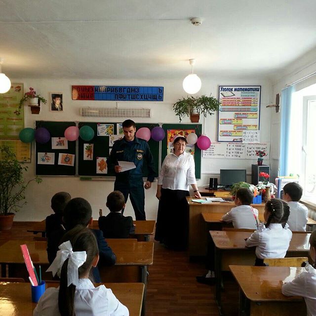 Один из классных часов на тему "Антитеррор", с участием сотрудников МЧС и МВД, провела учитель начальных классов - Басханова Э.Б.